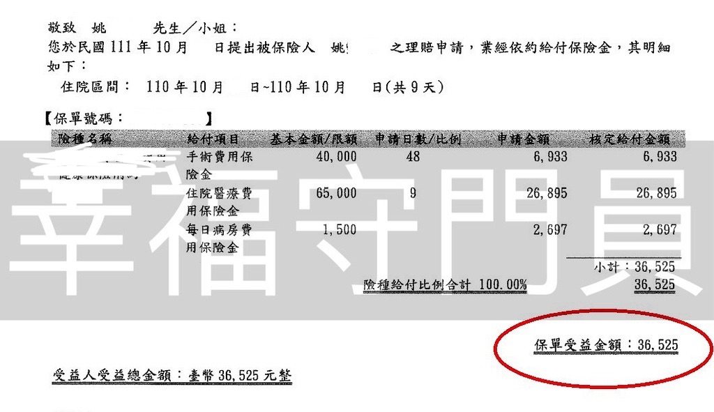 經過幾次與客戶一起向理賠人員商討爭取,最終理賠金順利理賠下來。